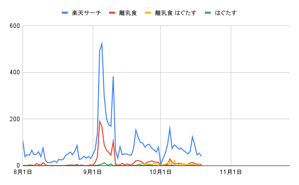 ▼転換率(「離乳食 はぐたす」の検索キーワードからの流入)