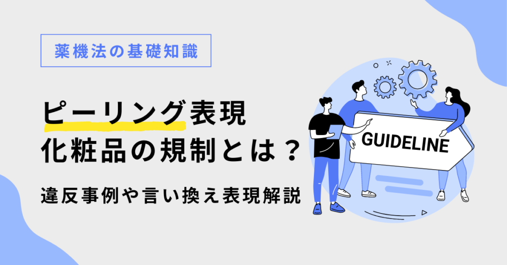 美容皮膚科やエステサロンだけでなく、日々のスキンケアでも手軽に取り入れられている「ピーリング」。ピーリング(peeling)とは、「皮をむく、剥ぐ」という意味を持つ言葉で、玉ねぎの外皮をむくとつるんとしたキレイな面が出てくるように、肌表面の不要な角質を剥ぐことです。魅力的な内容ですが「ピーリング」効果の表現は厳格なルールに基づいています。これに違反すると薬機法に抵触する可能性があるため細心の注意を払う必要があります。