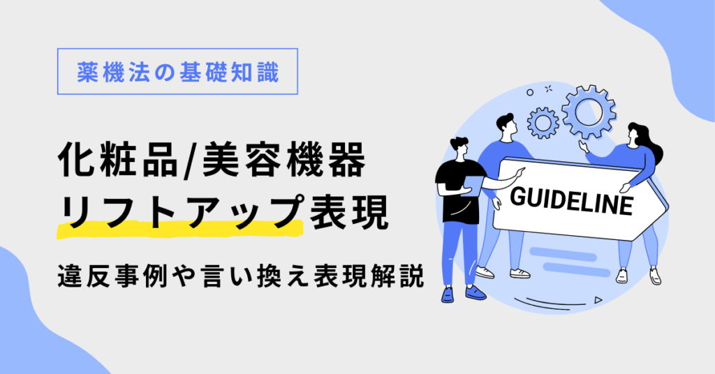 化粧品や美顔器における「リフトアップ」「引き締め」表現については、消費者の誤解を招かないようにするために薬機法や景表法といった法律によってその使用が厳しく規制されています。例えば、化粧品での「リフトアップ」表示は、医学的な効果を示唆するものではなく一時的な見た目の変化を指すものでなければなりません。