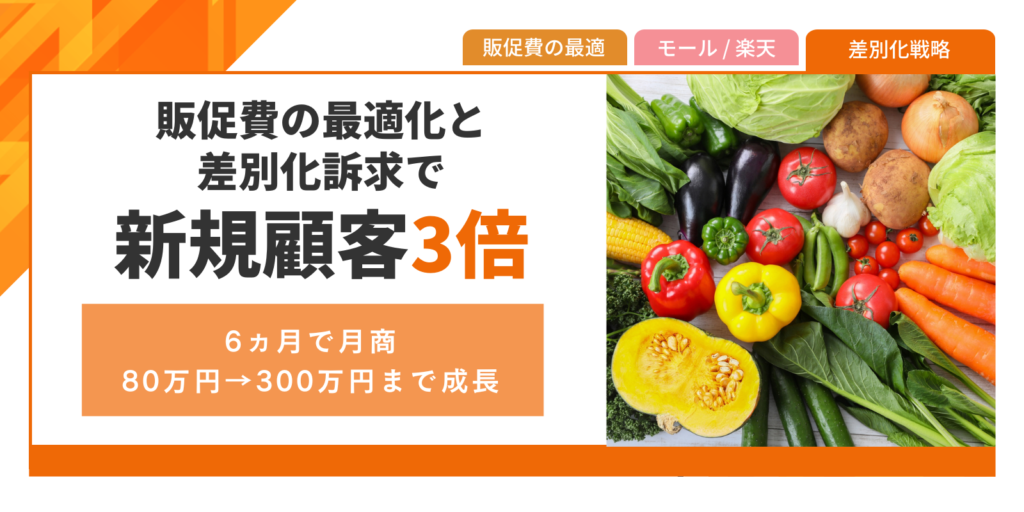 今回は平均月商80万円規模の状態から運営代行でご支援した成功事例です。機能性表示食品という優位性があるものの、ECの知見不足や制作リソースの不足などにより、売上の伸びが横ばいとなっている現状がありましたが、順調に売り上げを伸ばし半年で平均月商80万円→300万円まで成長させた食品ジャンルの楽天市場での戦略について解説します。