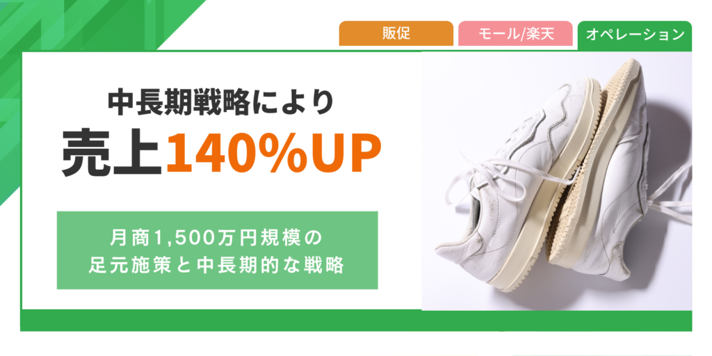 今回は売上が停滞し、中長期的な戦略立案や実行に至っていない企業様にご覧いただきたい成功事例です。楽天出店3年目で順調に月商1,500万円までは伸ばせているものの、戦略的な施策立案ができていない状況から、支援させていただいた前後で売上が140%アップした戦略について解説します。