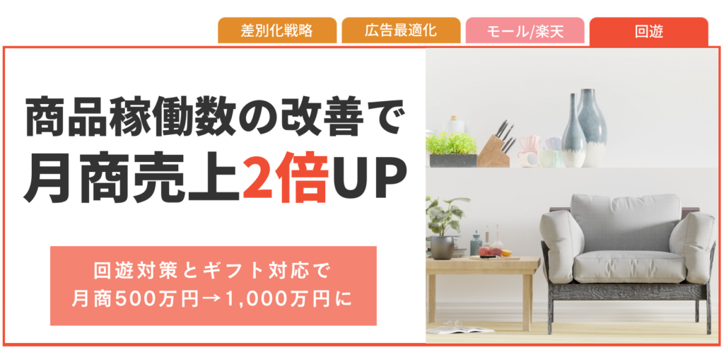 回遊の強化とギフトノベルティ対策で稼働数を改善!月商500万円から1,000万円ベースに売上拡大した戦略