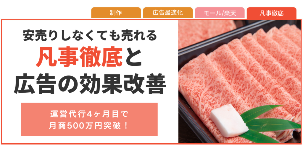 ①出店後、半年自社で運営したが売上が伸び悩んでいた 担当者が他の業務と兼務で1名しかおらず、施策の準備や凡事徹底する業務も間に合っていなかった ②広告は利用していたが効果的な運用ができていない ③売上1位の商品が月商40万ほどと、入口商品の育成ができていなかった |
