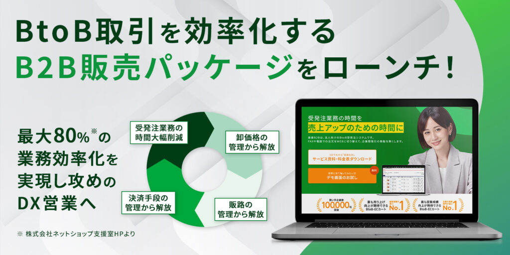BtoB取引業務を自動化できる『B2B販売パッケージ』についてご紹介いたしました。