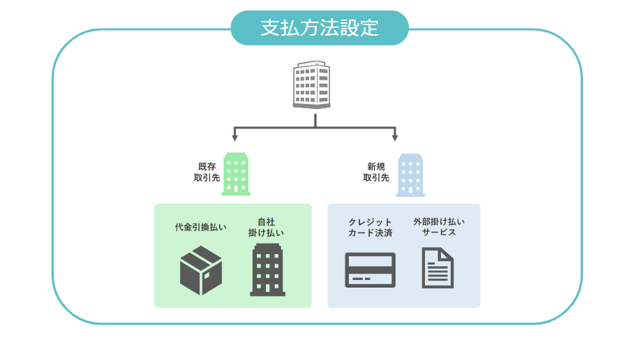 異なる取引先に対して柔軟な支払いオプションを提供でき、一部のお取引様に対して特定の支払方法を表示できます。取引の多様性に対応し、お客様のニーズに迅速かつ適切に対応するための柔軟性が実現されています。