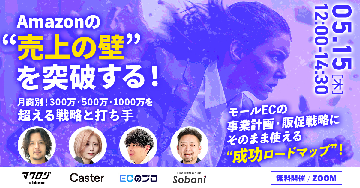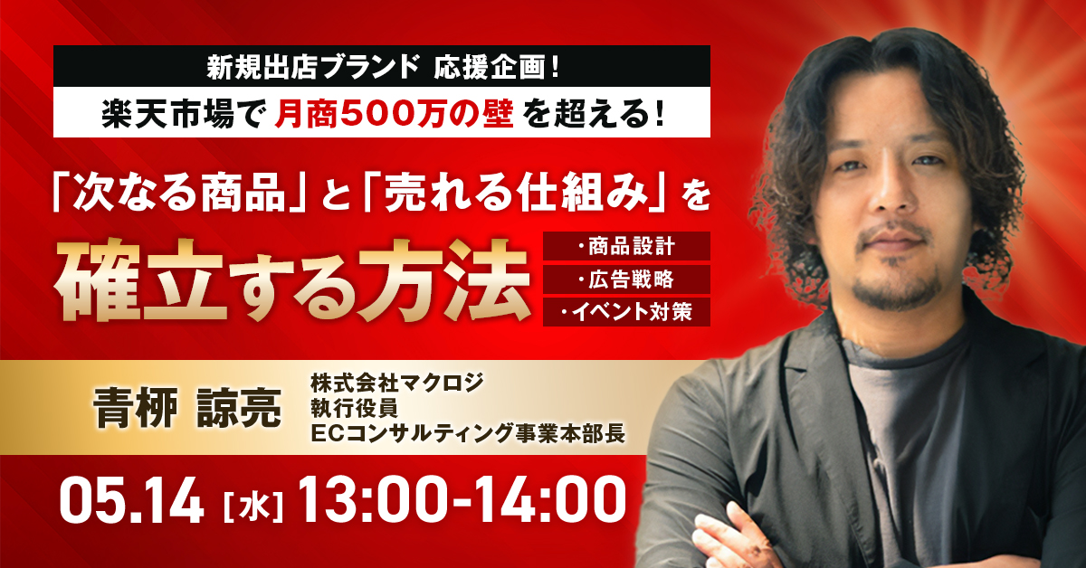 25年6月受付終了楽天市場AmazonSNSマーケティング自社EC初めてのEC広告運用集客ノウハウ 2025年ECの売上拡大施策を徹底解説ランディングページvsモールvsSNS 開催日 2025年6月09日 (月) 13:00 開催場所 オンライン開催(ZOOM) 25年6月受付終了楽天市場AmazonSEO自社EC初めてのEC集客ノウハウ “今、仕込むべき”EC×SEO戦略~半年後の売上をつくるオーガニック集客戦略2025~ 開催日 2025年6月04日 (水) 13:00 開催場所 オンライン開催(ZOOM) 25年6月受付終了AmazonSEO自社EC初めてのEC集客ノウハウ Amazonの“売上の壁”を突破する!~月商別!100万・500万・1000万・3000万を超える戦略と打ち手~ 開催日 2025年6月03日 (火) 13:00 受付終了Qoo10SNSマーケティング初めてのEC集客ノウハウ SNSで惹きつけ、Qoo10で売る!モール内施策×外部集客の掛け算戦略 開催日 2025年5月29日 (木) 13:00 開催場所 オンライン開催(ZOOM) 受付終了SNSマーケティング集客ノウハウ ~成功事例から学ぶEC売上UPの法則~ 開催日 2025年5月27日 (火) 16:00 開催場所 オンライン開催(ZOOM) 受付終了楽天市場AmazonD2CSNSマーケティング自社EC初めてのEC広告運用集客ノウハウ 独自性のある商品の創り方×広げ方×売り方~顧客に選ばれるブランド育成×販路拡大術をステップ別に解説~ 開催日 2025年5月27日 (火) 12:00 開催場所 オンライン開催(ZOOM) 受付終了アーカイブ配信楽天市場AmazonQoo10越境EC美容・コスメSNSマーケティング自社EC初めてのEC広告運用集客ノウハウ 【アーカイブ配信】認知拡大・売上アップ施策BEST20~激戦市場を勝ち抜く、ヒットブランド・商品の創り方~ 開催日 2025年4月30日 (水) 09:00 開催場所 【アーカイブ配信】オンライン開催(ZOOM) 受付終了Amazon自社EC初めてのEC広告運用集客ノウハウ Amazonの“売上の壁”を突破する!~月商別!300万・500万・1000万を超える戦略と打ち手~ 開催日 2025年5月15日 (木) 12:00 開催場所 オンライン開催(ZOOM) 受付終了楽天市場自社EC初めてのEC広告運用集客ノウハウ 楽天市場で月商500万の壁を超える!「次なる商品」と「売れる仕組み」を確立する方法〜商品設計・広告戦略・イベント対策〜 開催日 2025年5月14日 (水) 13:00 開催場所 オンライン開催(ZOOM) 受付終了SNSマーケティング自社EC初めてのEC広告運用集客ノウハウ 広告費のムダをなくす!Meta広告×ECの勝ちパターン大公開 開催日 2025年5月09日 (金) 16:00 開催場所 オンライン開催(ZOOM)