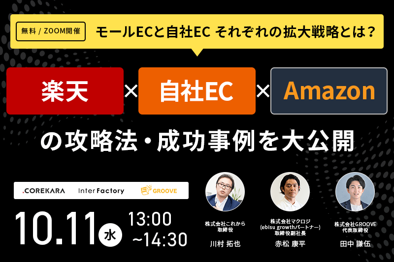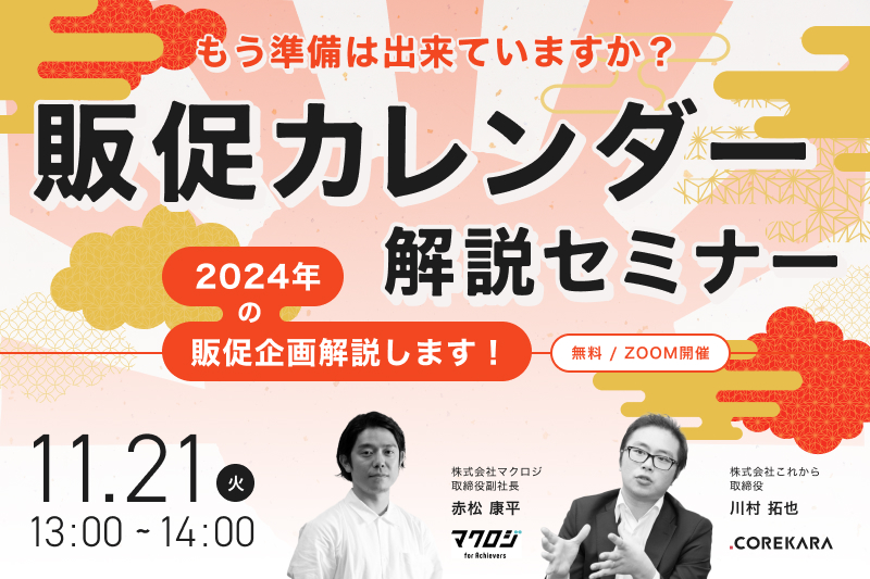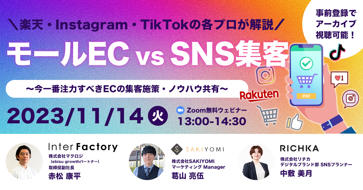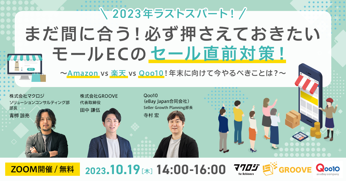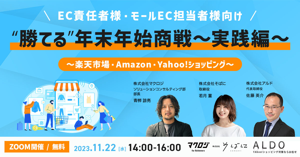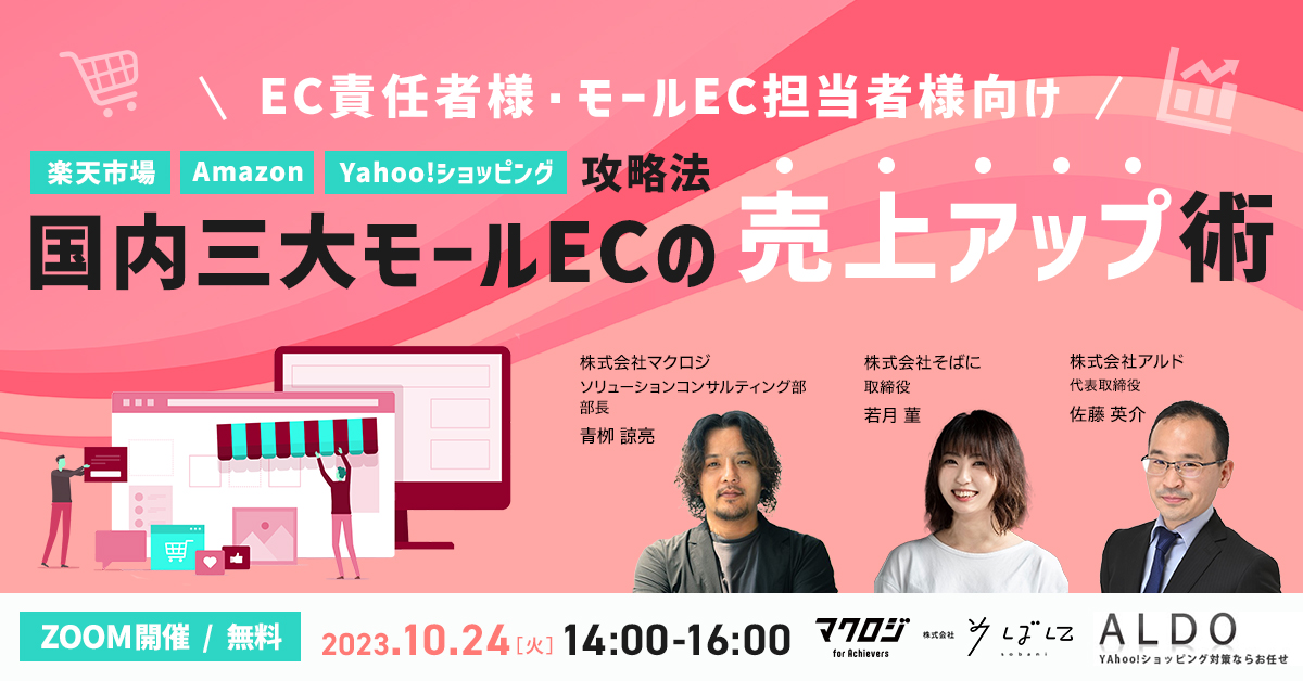 受付終了楽天市場AmazonYahoo!ショッピングSNSマーケティング初めてのEC集客ノウハウ “勝てる”年末年始商戦”実践編”~楽天市場・Amazon・Yahoo!ショッピング~ 開催日 2023年11月22日 (水) 14:00 開催場所 オンライン開催(ZOOM) 受付終了楽天市場自社EC初めてのEC集客ノウハウ 販促カレンダー解説セミナー 開催日 2023年11月21日 (火) 13:00 開催場所 オンライン開催(ZOOM) 受付終了楽天市場越境ECクラウドファンディング初めてのEC集客ノウハウ ヒット商品創出×ECの販売チャネル戦略 開催日 2023年11月15日 (水) 14:00 開催場所 オンライン開催(ZOOM) 受付終了楽天市場AmazonYahoo!ショッピングauPAYモールD2CSNSマーケティング自社EC初めてのEC集客ノウハウ 【アーカイブ配信】通販事業者に聞いて欲しい人気商品のつくり方が聞ける1日 開催日 2023年11月01日 (水) 00:00 開催場所 オンライン開催(ZOOM) 受付終了楽天市場SNSマーケティング初めてのEC集客ノウハウ モールEC vs SNS集客~今一番注力すべきECの集客施策・ノウハウ共有~ 開催日 2023年11月14日 (火) 13:00 開催場所 オンライン開催(ZOOM) 受付終了楽天市場Amazon自社EC初めてのEC集客ノウハウ プロが教える施策16選を”たった1日”で徹底解説 開催日 2023年10月18日 (水) 10:00 開催場所 オンライン開催(ZOOM) 受付終了楽天市場AmazonQoo10SNSマーケティング初めてのEC集客ノウハウ まだ間に合う!必ず押さえておきたいモールECのセール直前対策!~Amazon vs 楽天 vs Qoo10!年末に向けて今やるべきことは?~ 開催日 2023年10月19日 (木) 14:00 開催場所 オンライン開催(ZOOM) 受付終了楽天市場AmazonYahoo!ショッピングSNSマーケティング初めてのEC集客ノウハウ 楽天市場・Amazon・Yahoo!ショッピング攻略法~国内三大モールECの売上アップ術~ 開催日 2023年10月24日 (火) 14:00 開催場所 オンライン開催(ZOOM) 受付終了楽天市場AmazonYahoo!ショッピング自社EC初めてのEC集客ノウハウ 月商1000万超ショップの戦略設計からバックヤード体制構築手法を徹底解説 開催日 2023年10月17日 (火) 14:00 開催場所 オンライン開催(ZOOM) 受付終了楽天市場Amazon自社EC初めてのEC集客ノウハウ 楽天×自社EC×Amazonの攻略法・成功事例を大公開 開催日 2023年10月11日 (水) 13:00 開催場所 オンライン開催(ZOOM)
