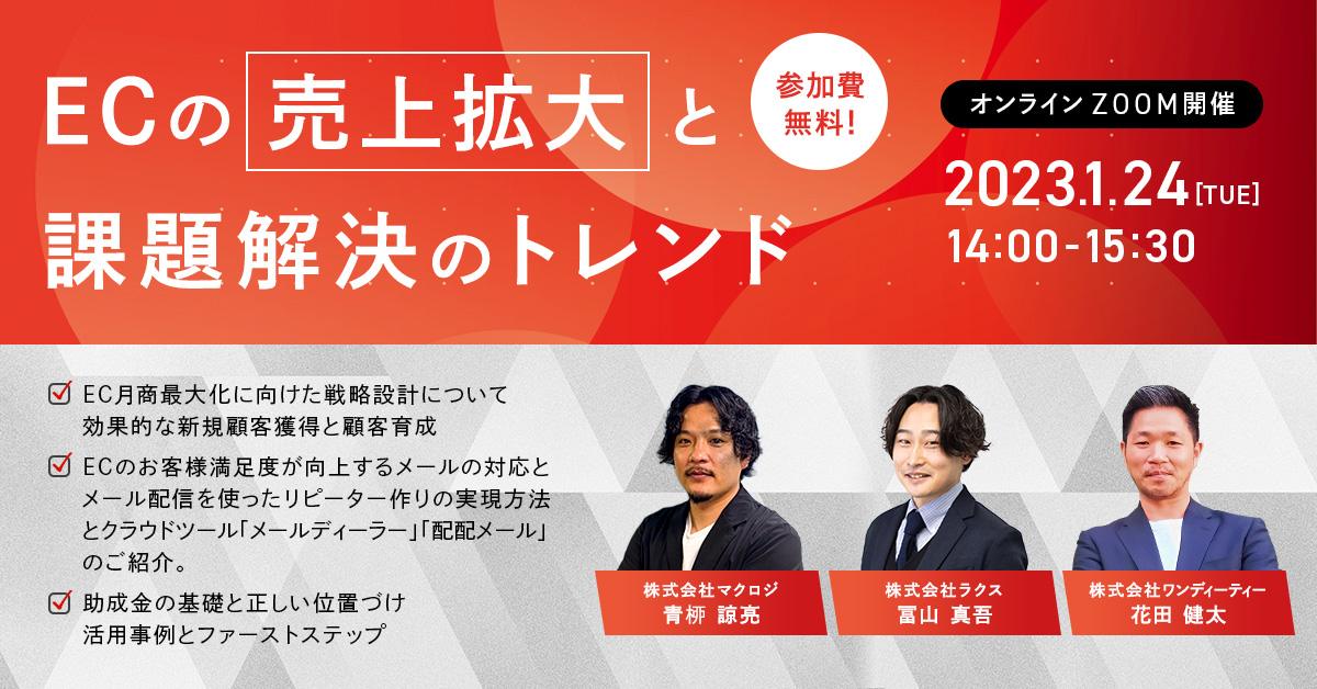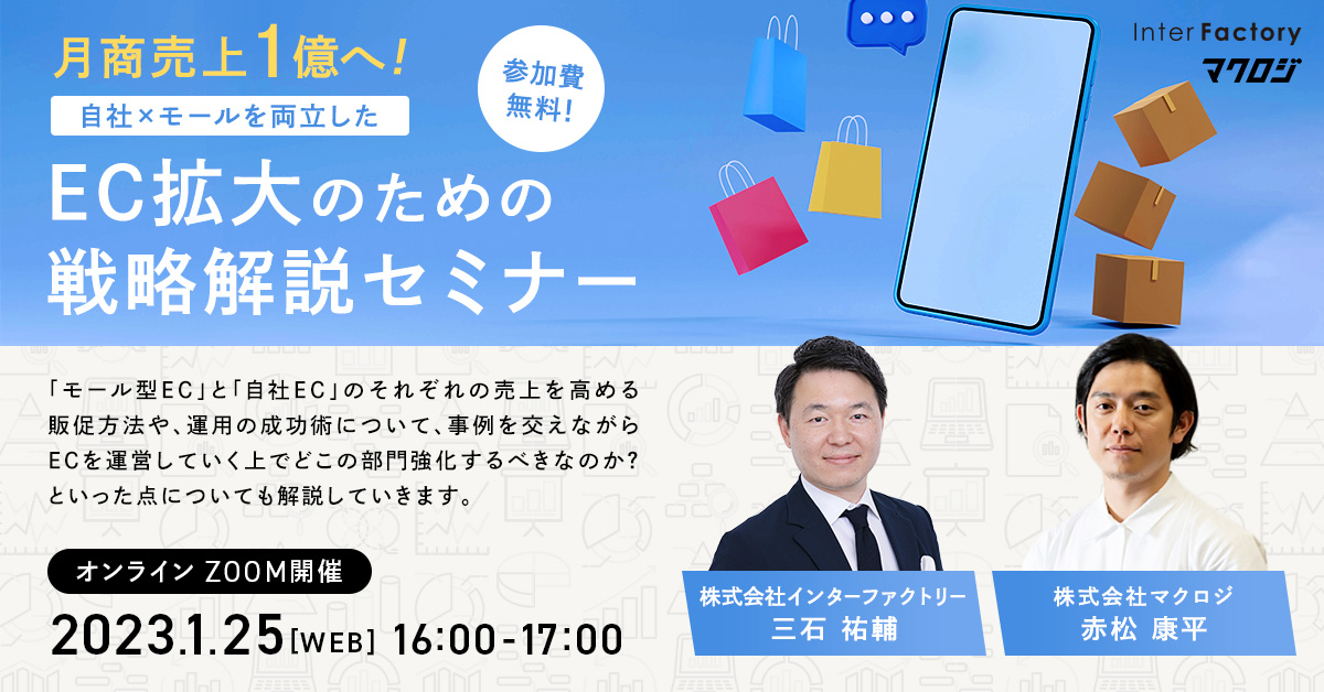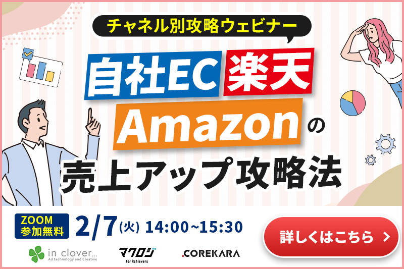 受付終了楽天市場AmazonYahoo!ショッピングauPAYモールD2CSNSマーケティング自社EC初めてのEC 自社EC・楽天・Amazonの売上アップ攻略法 開催日 2023年2月07日 (火) 14:00 開催場所 オンライン開催(ZOOM) 受付終了楽天市場AmazonYahoo!ショッピングauPAYモールD2CSNSマーケティング初めてのEC 「モール×自社EC」併用と売上アップのポイント 開催日 2023年1月26日 (木) 17:00 開催場所 オンライン開催(ZOOM) 受付終了楽天市場AmazonYahoo!ショッピングauPAYモールD2CSNSマーケティング初めてのEC 自社×モールを両立したEC拡大のための戦略解説セミナー 開催日 2023年1月25日 (水) 16:00 開催場所 オンライン開催(ZOOM) 受付終了楽天市場AmazonYahoo!ショッピングauPAYモールD2CSNSマーケティング初めてのEC ECの売上拡大と課題解決のトレンド 開催日 2023年1月24日 (火) 14:00 開催場所 オンライン開催(ZOOM) 受付終了楽天市場AmazonYahoo!ショッピングauPAYモールD2CSNSマーケティング初めてのEC 自社型EC・モール型ECの売上拡大戦略を徹底解説! 開催日 2023年1月12日 (木) 14:00 開催場所 オンライン開催(ZOOM) 受付終了楽天市場AmazonYahoo!ショッピングauPAYモールD2CSNSマーケティング初めてのEC 集客ノウハウ×ECの成長を支えるバックヤード構築 開催日 2022年12月22日 (木) 14:00 開催場所 オンライン開催(ZOOM) 受付終了楽天市場AmazonYahoo!ショッピングauPAYモールD2CSNSマーケティング初めてのEC 2023年を勝ち切りたいネットショップはコレを使え! 開催日 2022年12月09日 (金) 16:00 開催場所 オンライン開催(ZOOM) 受付終了楽天市場AmazonYahoo!ショッピングauPAYモールD2CSNSマーケティング初めてのEC 12月14日開催単品リピート通販事業の売上・LTV最大化ウェビナー 開催日 2022年12月14日 (水) 13:00 開催場所 オンライン開催(ZOOM) 受付終了楽天市場AmazonYahoo!ショッピングauPAYモールD2CSNSマーケティング初めてのEC 健全な店舗運営を行うポイントとは? 開催日 2022年11月28日 (月) 14:00 開催場所 オンライン開催(ZOOM) 受付終了楽天市場AmazonYahoo!ショッピングauPAYモールD2CSNSマーケティング初めてのEC 月商3000万円のためのデータ活用法と販売戦略! 開催日 2022年11月18日 (金) 14:00 開催場所 オンライン開催(ZOOM)