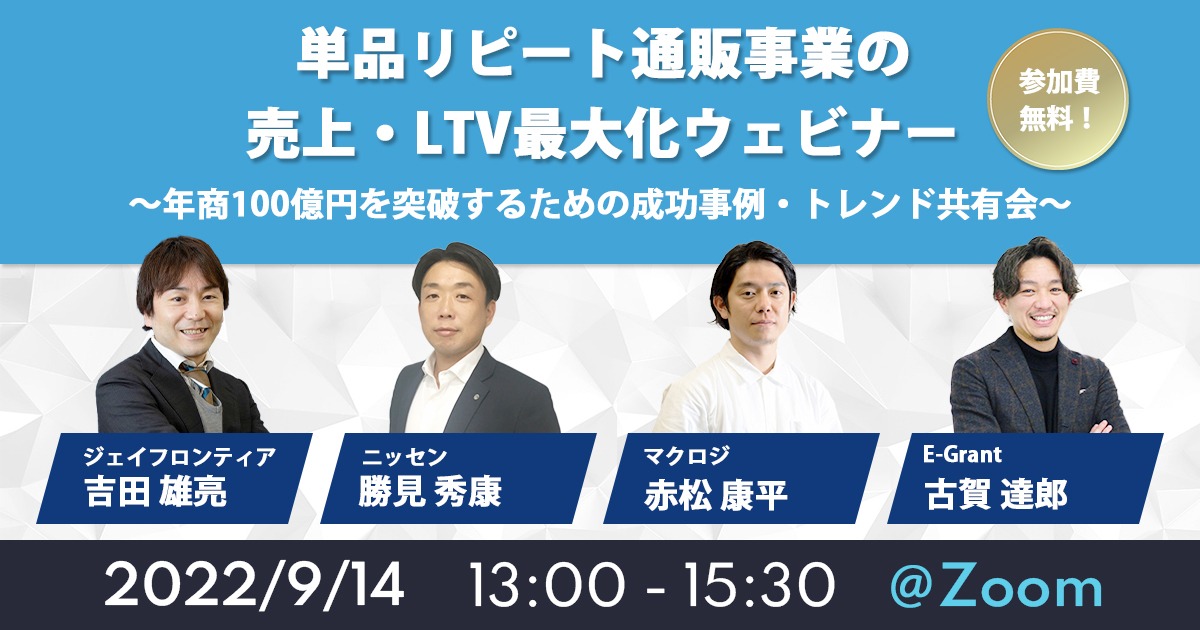 受付終了楽天市場AmazonYahoo!ショッピングauPAYモールD2CSNSマーケティング初めてのEC その告知、お客様に伝わっていますか? 開催日 2022年9月29日 (木) 14:00 開催場所 オンライン開催(ZOOM) 受付終了楽天市場AmazonYahoo!ショッピングauPAYモールD2CSNSマーケティング初めてのEC 単品リピート通販事業の売上・LTV最大化ウェビナー 開催日 2022年9月14日 (水) 13:00 開催場所 オンライン開催(ZOOM)