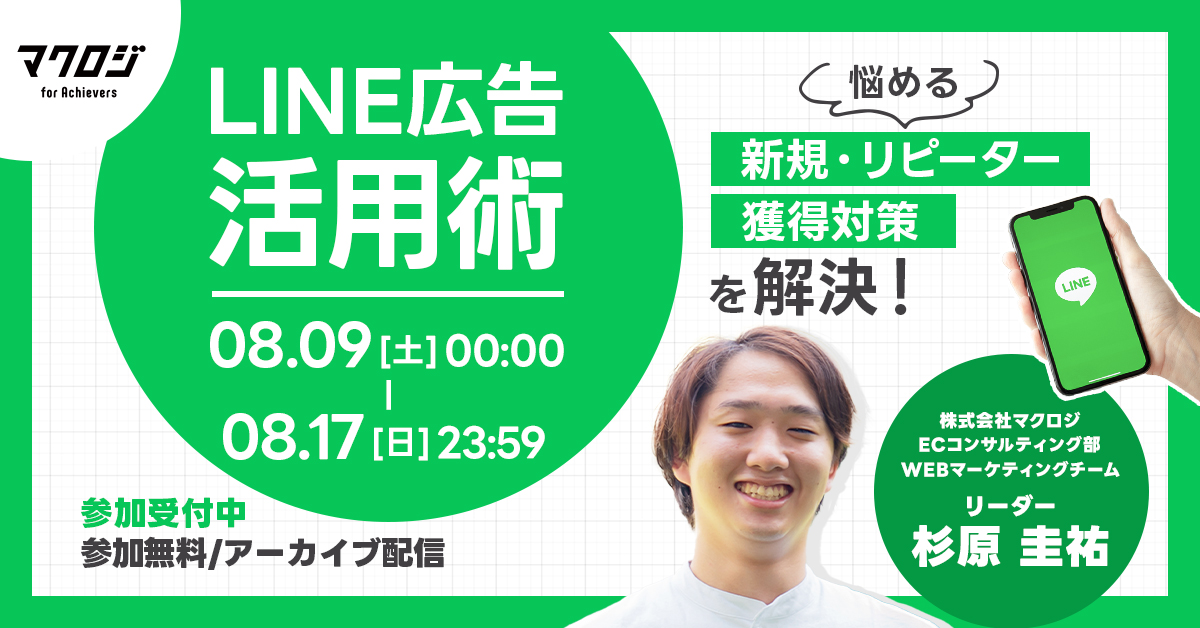 EC戦略ライブコマース25年9月TikTok受付終了アーカイブ配信SNSマーケティング自社EC広告運用集客ノウハウ 乗るなら今!TikTok発の購買行動革命~「商品を探す」から「動画で出会う」へ~ 開催日 2025年9月05日 (金) 14:00 開催場所 オンライン開催(ZOOM) EC戦略25年9月販促戦略受付終了楽天市場AmazonYahoo!ショッピングD2CSNSマーケティング初めてのEC広告運用集客ノウハウ Amazonアルゴリズム攻略とCV最大化のデータ設計〜ブラックフライデー前に仕込む、勝てる商品ページと運用改善の最前線〜 開催日 2025年9月04日 (木) 12:00 開催場所 オンライン開催(ZOOM) 25年9月販促戦略受付終了楽天市場AmazonD2Cクラウドファンディング自社EC初めてのEC集客ノウハウ 「高くても売れる」ネット販売におけるプレミアム戦略 開催日 2025年9月03日 (水) 20:00 開催場所 オンライン開催(ZOOM) EC戦略25年9月販促戦略受付終了Amazon初めてのEC広告運用集客ノウハウ 最新トレンド・成功事例を一挙公開 開催日 2025年9月03日 (水) 13:00 開催場所 オンライン開催(ZOOM) 25年9月受付終了アーカイブ配信SNSマーケティング自社EC初めてのEC広告運用集客ノウハウ LINE広告から始めるファン育成マーケティング 開催日 2025年9月01日 (月) 16:00 開催場所 オンライン開催(ZOOM) 25年8月受付終了楽天市場Amazon自社EC初めてのEC広告運用集客ノウハウ EC×データ分析の極意~売上直結のKPI設計&分析のプロが重視する指標とは?~ 開催日 2025年8月28日 (木) 13:00 開催場所 オンライン開催(ZOOM) 25年8月インフルエンサー受付終了アーカイブ配信SNSマーケティング自社EC初めてのEC広告運用集客ノウハウ “売れる”インフルエンサー施策のつくり方 開催日 2025年8月25日 (月) 15:00 開催場所 オンライン開催(ZOOM) 25年8月受付終了クラウドファンディング自社EC初めてのEC広告運用集客ノウハウ ECで売れる商品はこう創る!ヒット商品の“型”とクラウドファンディング活用術 開催日 2025年8月20日 (水) 10:00 開催場所 オンライン開催(ZOOM) 25年8月販促戦略受付終了楽天市場AmazonD2C自社EC初めてのEC広告運用集客ノウハウ 診断!その商品、“どこでどう売るか”の正解は?~Amazon・楽天・自社ECのプロが本音でジャッジ~ 開催日 2025年8月19日 (火) 13:00 開催場所 オンライン開催(ZOOM) 25年8月受付終了アーカイブ配信SNSマーケティング広告運用集客ノウハウ 【アーカイブ配信】LINE広告活用術 開催日 2025年8月09日 (土) 00:00 開催場所 オンライン開催(アーカイブ)