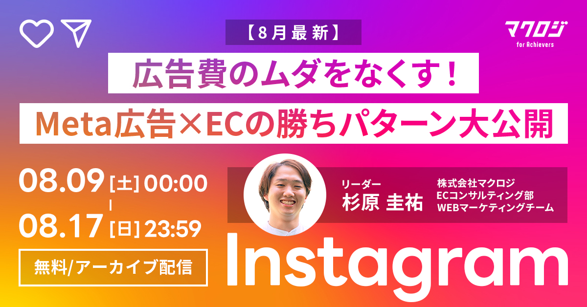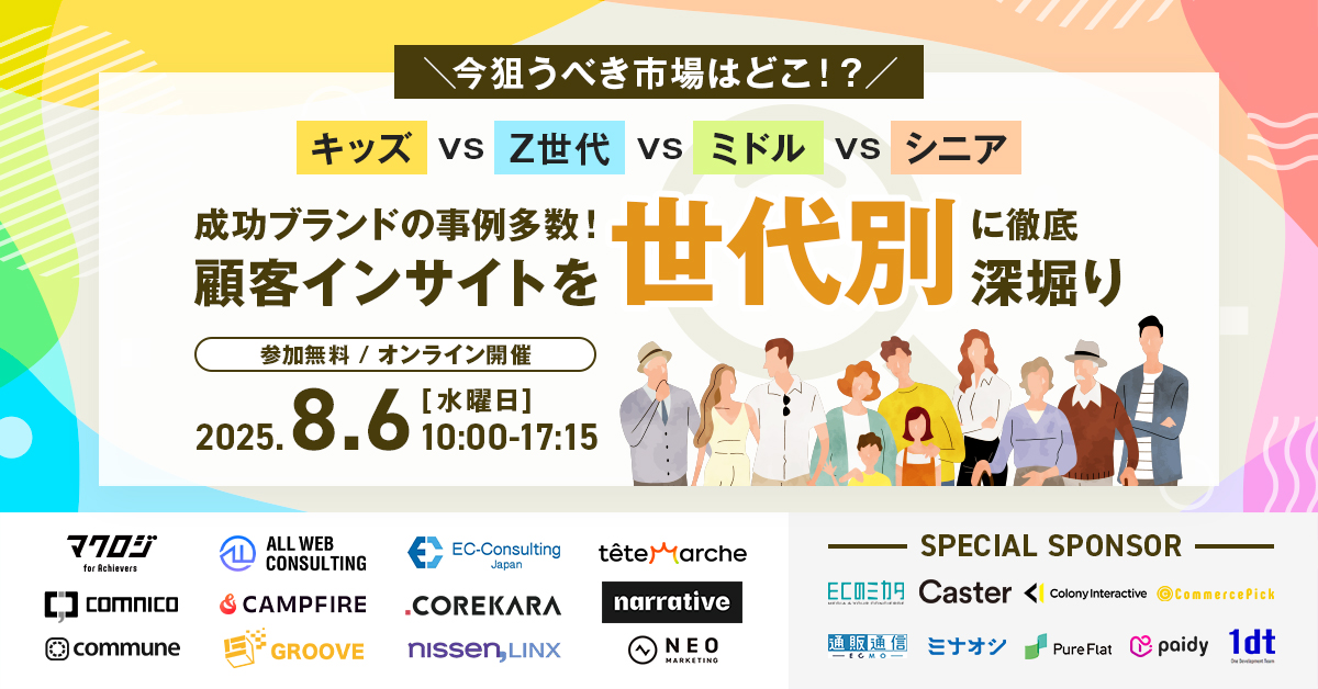 25年8月インフルエンサー受付終了アーカイブ配信SNSマーケティング集客ノウハウ 【アーカイブ配信】売れるEC企業が実践するインフルエンサー施策の舞台裏と勝ちパターン 開催日 2025年8月09日 (土) 00:00 開催場所 オンライン開催(アーカイブ) 25年8月受付終了アーカイブ配信SNSマーケティング広告運用集客ノウハウ 【アーカイブ配信】インフルエンサーに任せたら爆売れした件 開催日 2025年8月09日 (土) 00:00 開催場所 オンライン開催(アーカイブ) 25年8月受付終了アーカイブ配信SNSマーケティング自社EC広告運用集客ノウハウ 【アーカイブ配信】Meta広告×ECの勝ちパターン大公開 開催日 2025年8月09日 (土) 00:00 開催場所 オンライン開催(アーカイブ) 25年8月受付終了アーカイブ配信SNSマーケティング自社EC初めてのEC集客ノウハウ 【アーカイブ配信】「SNS広告って何なん?」って思ってる人のための超入門セミナー 開催日 2025年8月09日 (土) 00:00 開催場所 オンライン開催(アーカイブ) 25年8月受付終了アーカイブ配信楽天市場AmazonSEO初めてのEC集客ノウハウ 【アーカイブ配信】Amazonの“売上の壁”を突破する!~月商別!100万・500万・1000万・3000万を超える戦略と打ち手~ 開催日 2025年8月08日 (金) 00:00 開催場所 オンライン開催(アーカイブ配信) 25年8月受付終了アーカイブ配信楽天市場SNSマーケティング初めてのEC広告運用集客ノウハウ 【アーカイブ配信】楽天市場の“売上の壁”を突破する!~月商別!100万・500万・1000万・3000万を超える戦略と打ち手~ 開催日 2025年8月08日 (金) 00:00 開催場所 オンライン開催(ZOOM) 25年8月受付終了楽天市場自社EC初めてのEC広告運用集客ノウハウ 楽天市場×広告戦略 2025~運用実績700社店超のプロ直伝!セール・RPP広告の成功施策~ 開催日 2025年8月07日 (木) 10:00 開催場所 オンライン開催(ZOOM) 25年8月TikTok最新トレンド受付終了楽天市場AmazonYahoo!ショッピングD2CSNSマーケティング自社EC初めてのEC集客ノウハウ キッズvsZ世代vsミドルvsシニア~成功ブランドの事例多数!顧客インサイトを世代別”に徹底深堀り~ 開催日 2025年8月06日 (水) 10:00 開催場所 オンライン開催(ZOOM) 25年8月販促戦略TikTok受付終了楽天市場AmazonQoo10広告運用集客ノウハウ 王者販路vs新興販路~脱・プラットフォーム任せ。攻めるためのEC運営戦略~ 開催日 2025年8月05日 (火) 13:00 開催場所 オンライン開催(ZOOM) 25年7月受付終了楽天市場AmazonD2CSNSマーケティング自社EC初めてのEC 利益最大化を目指す!次世代のECバリューチェーン設計2025~商品開発×販促最適化×RPA自動化×物流DX×CX向上~ 開催日 2025年7月30日 (水) 13:00 開催場所 オンライン開催(ZOOM)