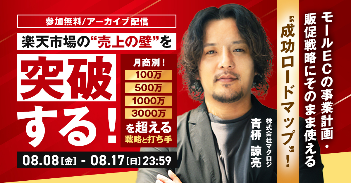 25年8月販促戦略受付終了楽天市場AmazonD2C自社EC初めてのEC広告運用集客ノウハウ 診断!その商品、“どこでどう売るか”の正解は?~Amazon・楽天・自社ECのプロが本音でジャッジ~ 開催日 2025年8月19日 (火) 13:00 ~ 開催場所 オンライン開催(ZOOM) 25年8月販促戦略TikTok受付終了楽天市場AmazonQoo10広告運用集客ノウハウ 王者販路vs新興販路~脱・プラットフォーム任せ。攻めるためのEC運営戦略~ 開催日 2025年8月05日 (火) 13:00 ~ 開催場所 オンライン開催(ZOOM) 25年8月受付終了楽天市場Amazon自社EC初めてのEC広告運用集客ノウハウ EC×データ分析の極意~売上直結のKPI設計&分析のプロが重視する指標とは?~ 開催日 2025年8月28日 (木) 13:00 ~ 開催場所 オンライン開催(ZOOM) 25年8月受付終了クラウドファンディング自社EC初めてのEC広告運用集客ノウハウ ECで売れる商品はこう創る!ヒット商品の“型”とクラウドファンディング活用術 開催日 2025年8月20日 (水) 10:00 ~ 開催場所 オンライン開催(ZOOM) 25年8月インフルエンサー受付終了アーカイブ配信SNSマーケティング自社EC初めてのEC広告運用集客ノウハウ “売れる”インフルエンサー施策のつくり方 開催日 2025年8月25日 (月) 15:00 ~ 開催場所 オンライン開催(ZOOM) 25年8月受付終了アーカイブ配信SNSマーケティング自社EC初めてのEC集客ノウハウ 【アーカイブ配信】「SNS広告って何なん?」って思ってる人のための超入門セミナー 開催日 2025年8月09日 (土) 00:00 ~ 開催場所 オンライン開催(アーカイブ) 25年8月受付終了アーカイブ配信楽天市場SNSマーケティング初めてのEC広告運用集客ノウハウ 【アーカイブ配信】楽天市場の“売上の壁”を突破する!~月商別!100万・500万・1000万・3000万を超える戦略と打ち手~ 開催日 2025年8月08日 (金) 00:00 ~ 開催場所 オンライン開催(ZOOM) 25年8月受付終了アーカイブ配信楽天市場AmazonSEO初めてのEC集客ノウハウ 【アーカイブ配信】Amazonの“売上の壁”を突破する!~月商別!100万・500万・1000万・3000万を超える戦略と打ち手~ 開催日 2025年8月08日 (金) 00:00 ~ 開催場所 オンライン開催(アーカイブ配信) 25年8月インフルエンサー受付終了アーカイブ配信SNSマーケティング集客ノウハウ 【アーカイブ配信】売れるEC企業が実践するインフルエンサー施策の舞台裏と勝ちパターン 開催日 2025年8月09日 (土) 00:00 ~ 開催場所 オンライン開催(アーカイブ) 25年8月受付終了アーカイブ配信SNSマーケティング広告運用集客ノウハウ 【アーカイブ配信】インフルエンサーに任せたら爆売れした件 開催日 2025年8月09日 (土) 00:00 ~ 開催場所 オンライン開催(アーカイブ)
