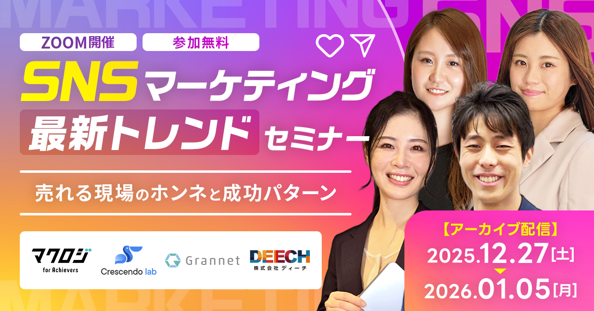 26年1月SNSEC戦略販促戦略TikTok受付終了楽天市場初めてのEC集客ノウハウ 売れるECは“差別化商材”で決まる─国内競争を避ける海外ブランド活用術 開催日 2026年1月29日 (木) 11:00 ~ 開催場所 オンライン開催(ZOOM) 26年2月EC戦略販促戦略TikTokインフルエンサー受付終了楽天市場AmazonYahoo!ショッピングD2C美容・コスメSNSマーケティング自社EC初めてのEC広告運用集客ノウハウ 化粧品・コスメ・サプリECの販売戦略~商品リニューアル?販路拡大?LTV改善?今必要な施策とは~ 開催日 2026年2月12日 (木) 13:00 ~ 開催場所 オンライン開催(ZOOM) 26年1月EC戦略ライブコマースTikTok最新トレンド受付終了アーカイブ配信SNSマーケティング自社EC広告運用集客ノウハウ 【アーカイブ配信】SNSマーケティング最新トレンドセミナー~売れる現場のホンネと成功パターン~ 開催日 2025年12月27日 (土) 00:00 ~ 開催場所 オンライン開催(アーカイブ) 26年1月X(Twitter)InstagramSNSLINEEC戦略販促戦略TikTok最新トレンドインフルエンサー受付終了アーカイブ配信楽天市場AmazonYahoo!ショッピングQoo10D2CSNSマーケティング自社EC初めてのEC広告運用集客ノウハウ 【アーカイブ配信】EC&SNS HACK~BtoCマーケティング大総括~ 開催日 2025年12月24日 (水) 00:00 ~ 開催場所 オンライン開催(ZOOM) アパレル25年12月InstagramEC戦略販促戦略TikTok受付終了楽天市場自社EC初めてのEC集客ノウハウ EC×アパレル戦略のトレンド~楽天・Amazon・自社EC・SNS別に“今すぐやるべき“施策を解説~ 開催日 2025年12月10日 (水) 13:00 ~ 開催場所 オンライン開催(ZOOM) 25年12月EC戦略販促戦略TikTok受付終了楽天市場AmazonD2C美容・コスメSNSマーケティング自社EC初めてのEC広告運用集客ノウハウ 化粧品・健康食品・食品総合戦略〜ジャンル特化編〜 開催日 2025年12月04日 (木) 13:00 ~ 開催場所 オンライン開催(ZOOM) 薬機法・景品表示法コンプレックス商材25年11月AISNSLINEEC戦略販促戦略TikTok最新トレンドCRM受付終了楽天市場AmazonYahoo!ショッピングQoo10D2CSNSマーケティング自社EC初めてのEC広告運用集客ノウハウ コンプレックス商材の売り方&薬機法 最先端~AIペルソナ・TikTok Shop・モール×SNS・LINE×CRM~ 開催日 2025年11月13日 (木) 13:00 ~ 開催場所 オンライン開催(ZOOM) Instagram25年10月TikTokインフルエンサー受付終了アーカイブ配信SNSマーケティング自社EC初めてのEC広告運用集客ノウハウ 広告感ゼロで拡散力MAX!ショート動画×インフルエンサー最新活用術 開催日 2025年10月30日 (木) 16:00 ~ 開催場所 オンライン開催(ZOOM) X(Twitter)25年11月InstagramSNSLINEEC戦略販促戦略TikTok最新トレンドインフルエンサー受付終了楽天市場AmazonYahoo!ショッピングQoo10D2CSNSマーケティング自社EC初めてのEC広告運用集客ノウハウ EC&SNS HACK~BtoCマーケティング大総括~ 開催日 2025年11月19日 (水) 10:00 ~ 開催場所 オンライン開催(ZOOM) 25年10月EC戦略販促戦略TikTokインフルエンサー受付終了楽天市場AmazonYahoo!ショッピングD2C美容・コスメSNSマーケティング自社EC初めてのEC広告運用集客ノウハウ 化粧品・コスメ・サプリECの販売戦略~商品リニューアル?販路拡大?LTV改善?今必要な施策とは~ 開催日 2025年10月21日 (火) 13:00 ~ 開催場所 オンライン開催(ZOOM)